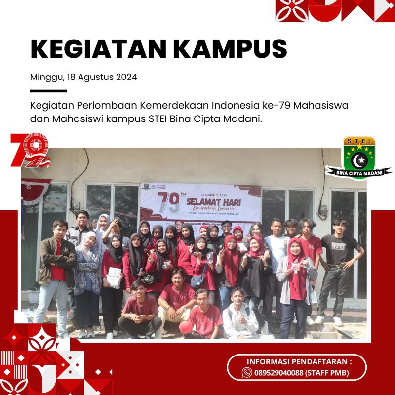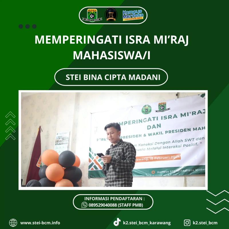 Dengan berbagai prasarana serta fasilitas yang sangat baik, membuat proses pembelajaran semakin nyaman didukung pula dengan para dosen dosen berkualitas di bidangnya, menjadikan kampus STEI Bina Cipta Madani solusi terbaik bagi teman teman yang merencanakan pendidikan selanjutnya